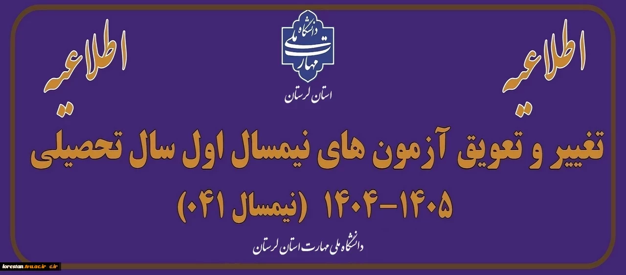 امتیاز دهید : اطلاعیه برگزاری امتحانات پایان ترم نیمسال اول سالتحصیلی 1405-1404 2 یکشنبه 28 دی 1404 ساعت 9:47